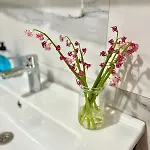 这栋别墅还设有大厨房和2间浴室,便利设施齐全. 从房间可以欣赏花园风景.
